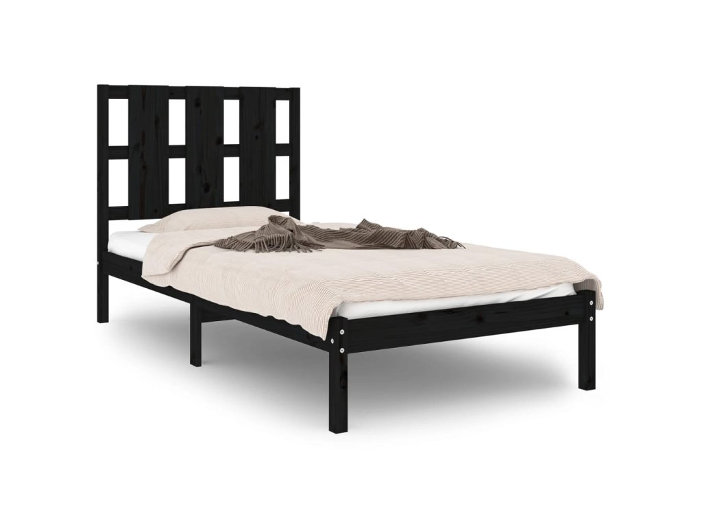 Rám postele černý masivní dřevo 75 x 190 cm malé jednolůžko 3105564