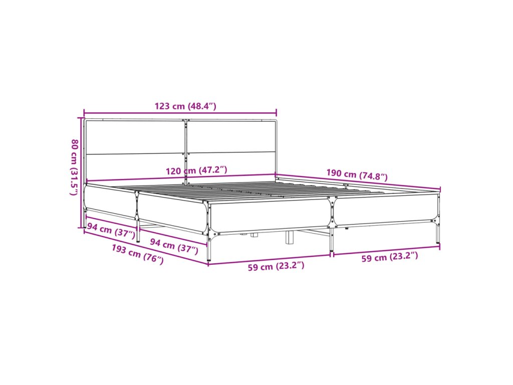 Rám postele dub sonoma 120 x 190 cm kompozitní dřevo a kov 3280023