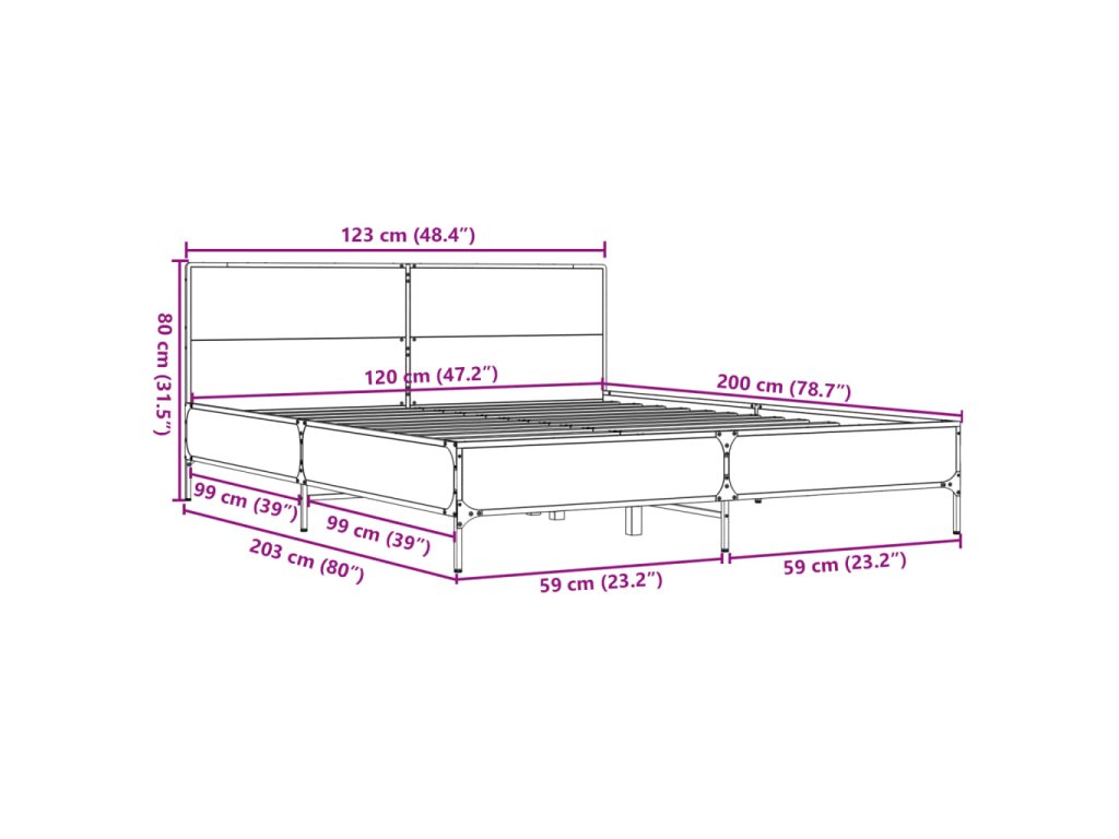 Rám postele dub sonoma 120 x 200 cm kompozitní dřevo a kov 3279993
