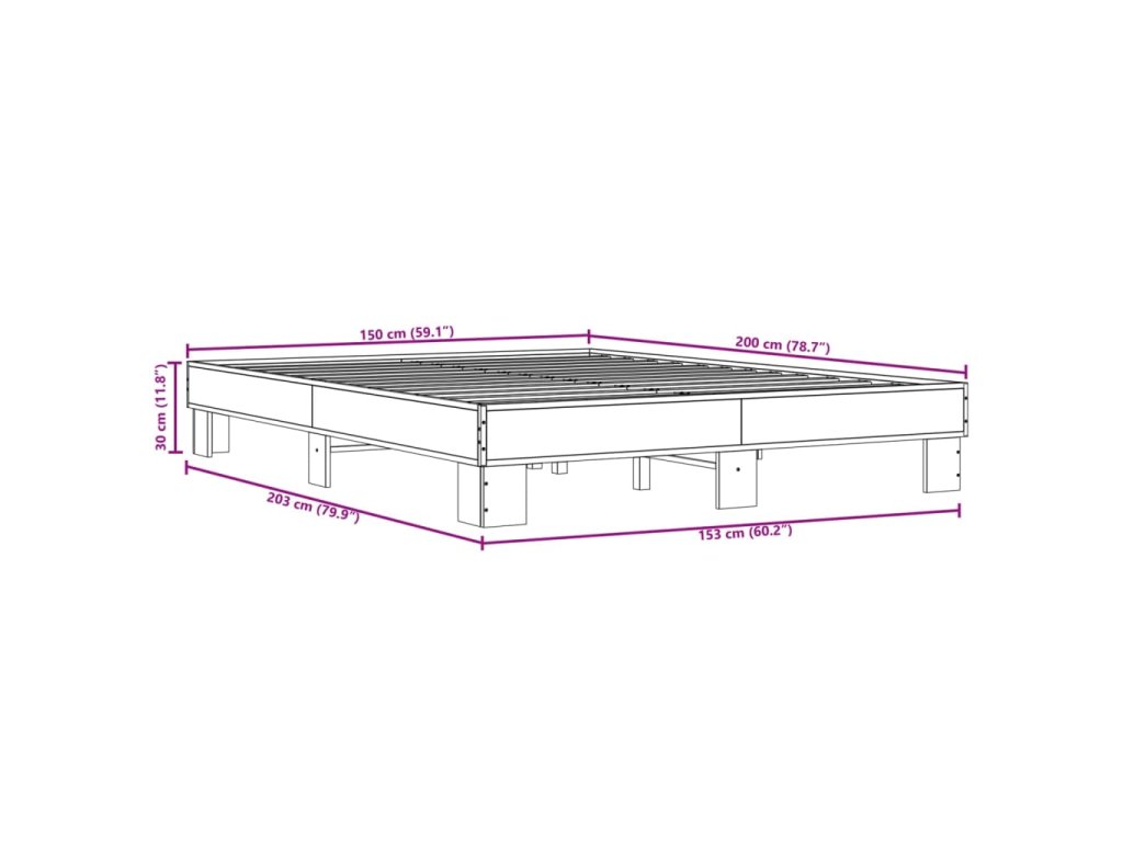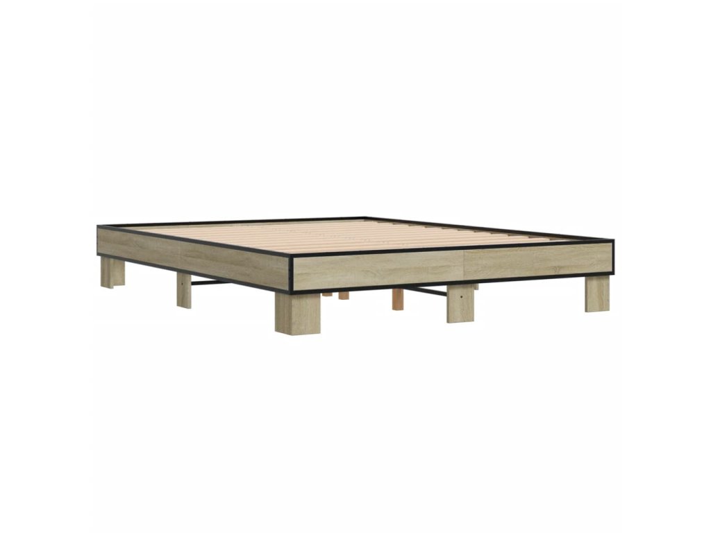 Rám postele dub sonoma 150 x 200 cm kompozitní dřevo a kov 3280233