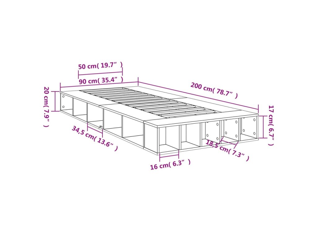 Rám postele dub sonoma 90 x 200 cm kompozitní dřevo 3280519