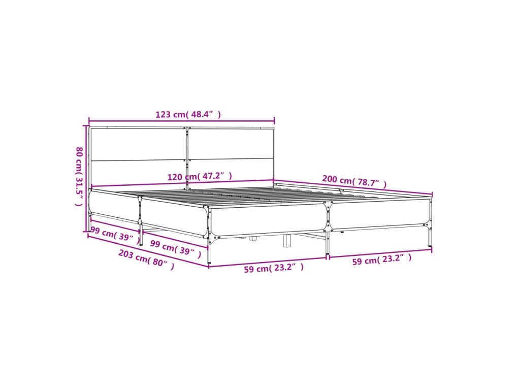 Rám postele hnědý dub 120 x 200 cm kompozitní dřevo a kov 3279996