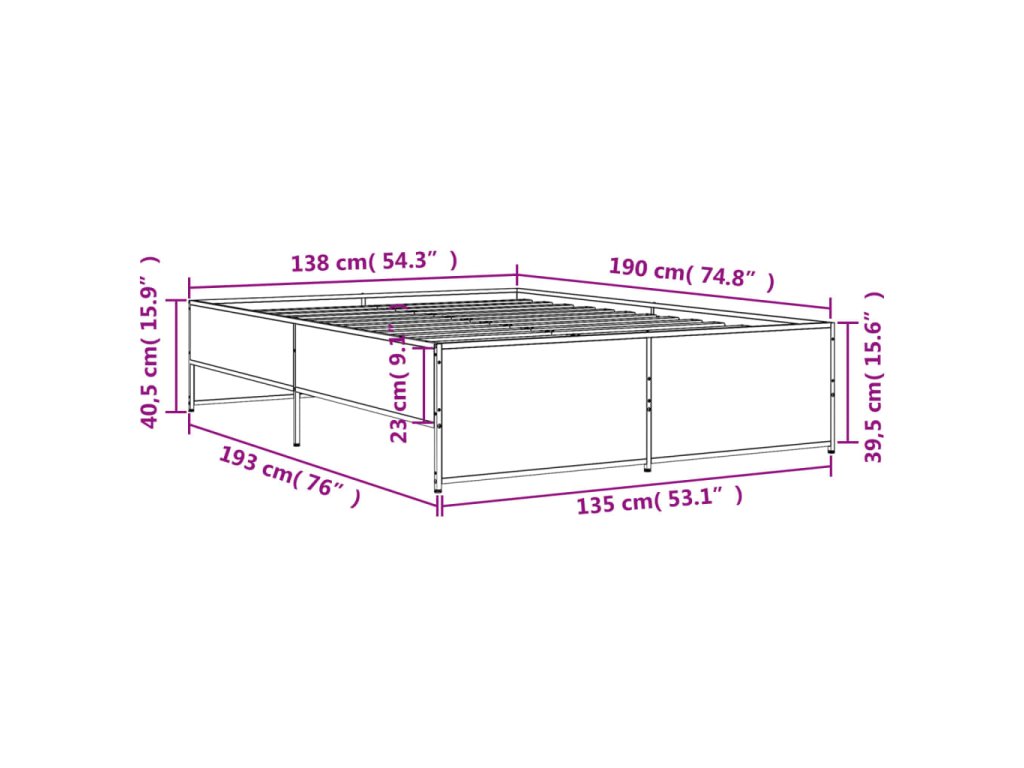Rám postele hnědý dub 135 x 190 cm kompozitní dřevo a kov 3279906