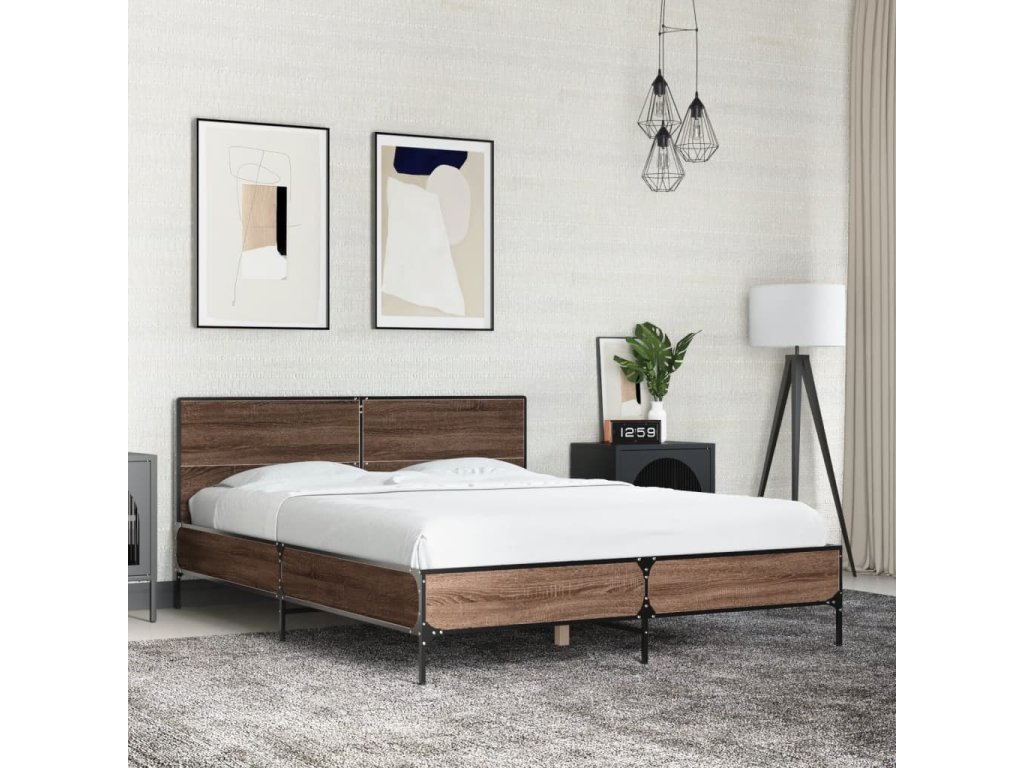 Rám postele hnědý dub 135 x 190 cm kompozitní dřevo a kov 3280031
