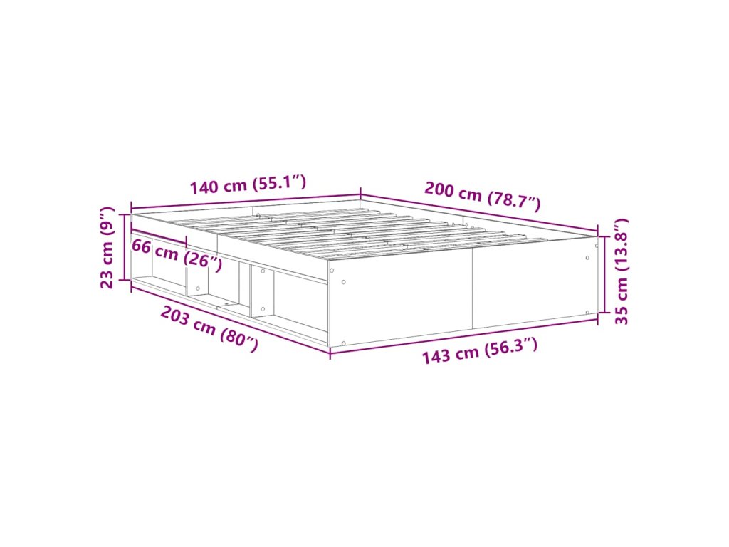 - Vhodné rozměry matrace (matrace není součástí balení): 140 x 200 cm (Š x D)