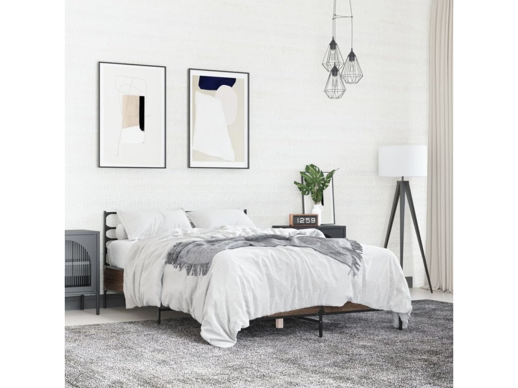 Rám postele hnědý dub 140 x 200 cm kompozitní dřevo a kov 3280046
