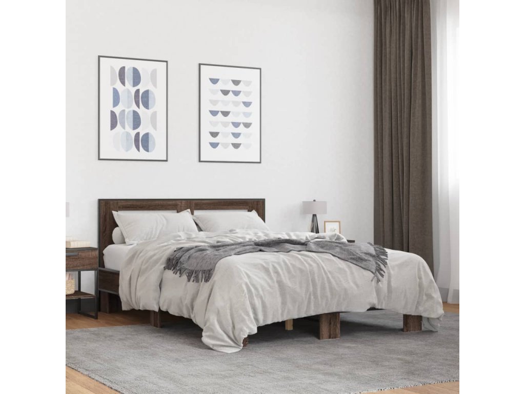 Rám postele hnědý dub 140 x 200 cm kompozitní dřevo a kov 3280106