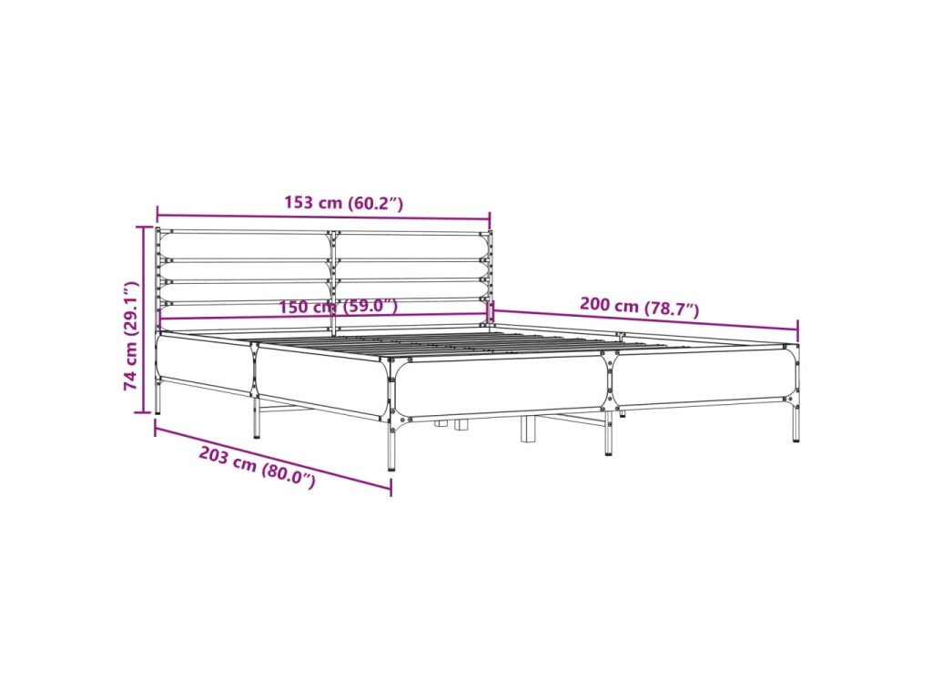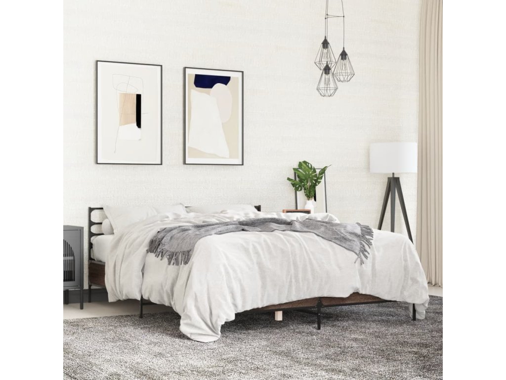 Rám postele hnědý dub 150 x 200 cm kompozitní dřevo a kov 3280051