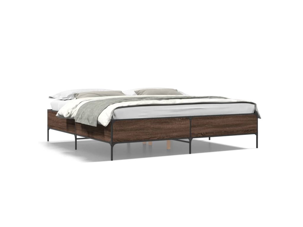 Rám postele hnědý dub 200 x 200 cm kompozitní dřevo a kov 3279781