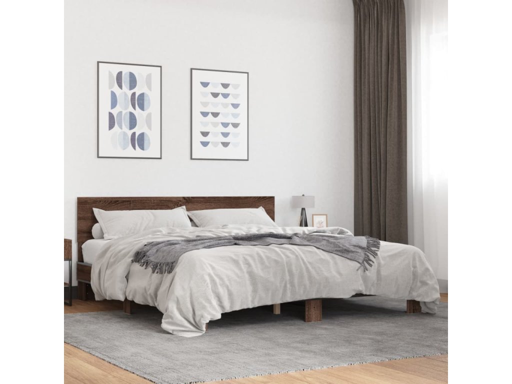 Rám postele hnědý dub 200 x 200 cm kompozitní dřevo a kov 3280176