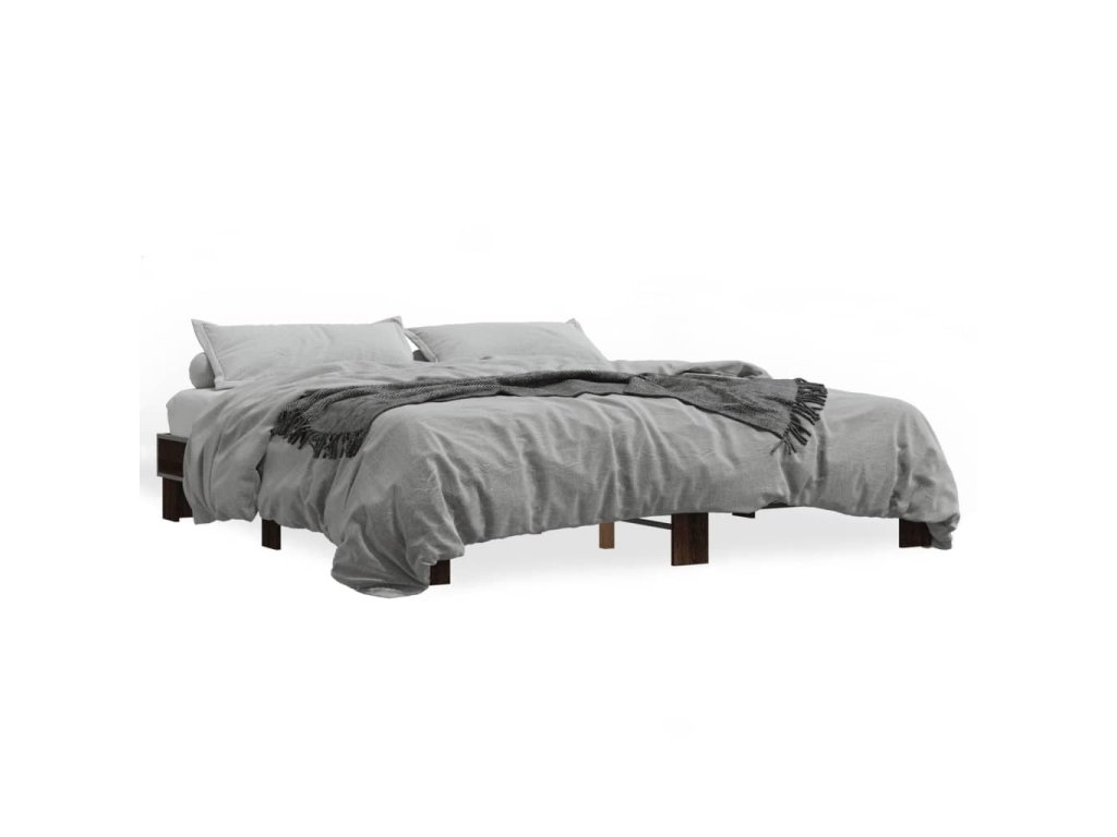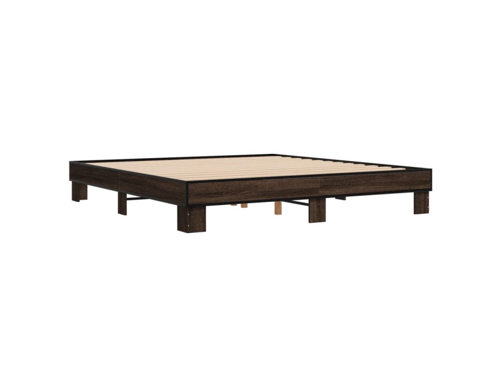 Rám postele hnědý dub 200 x 200 cm kompozitní dřevo a kov 3280221