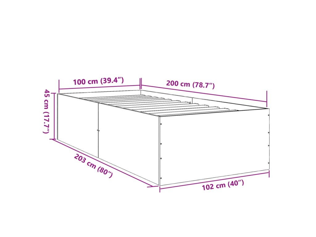 Rám postele kouřový dub 100 x 200 cm kompozitní dřevo 3280962