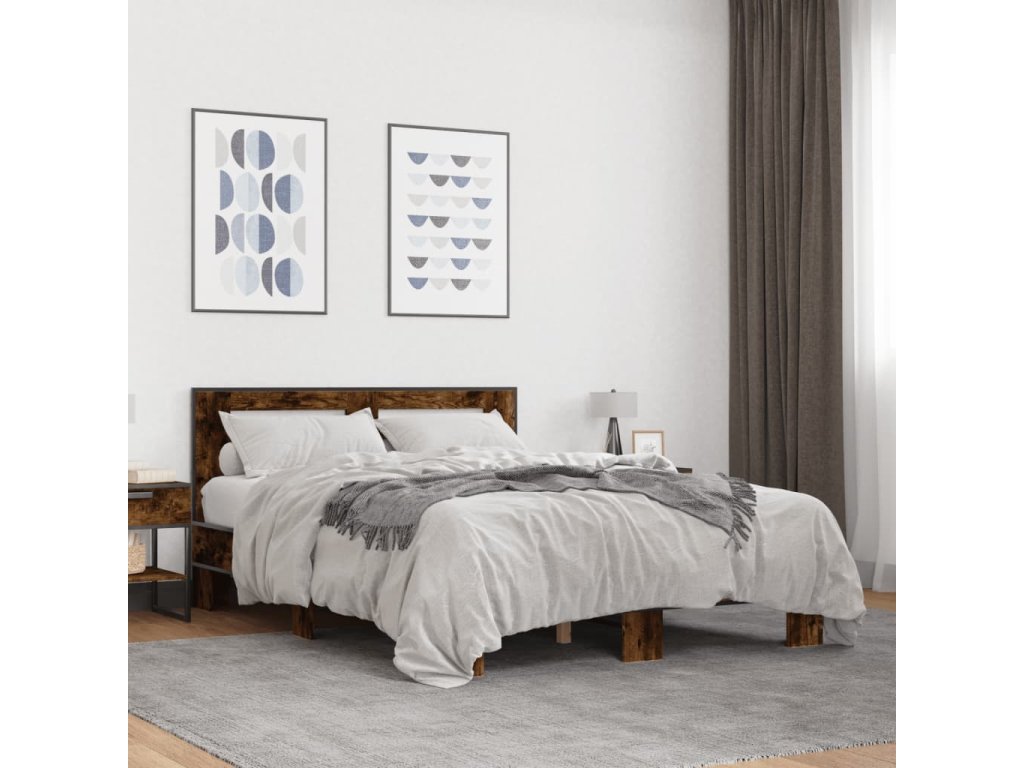 Rám postele kouřový dub 120 x 200 cm kompozitní dřevo a kov 3280109