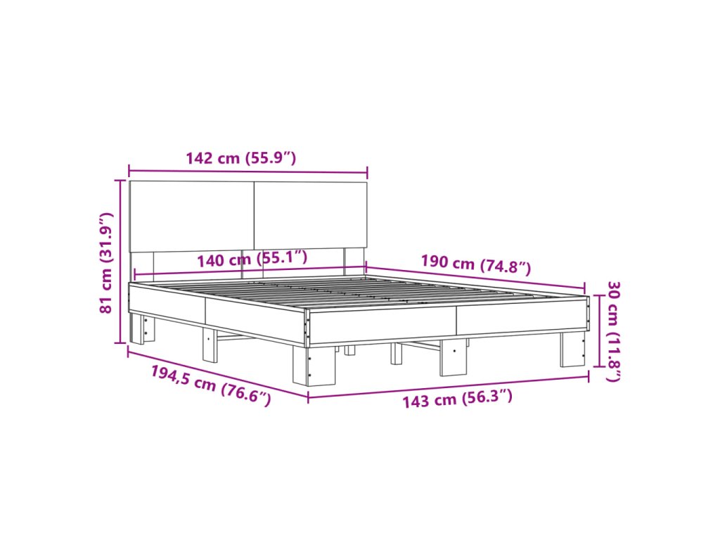 Rám postele kouřový dub 140 x 190 cm kompozitní dřevo a kov 3280214