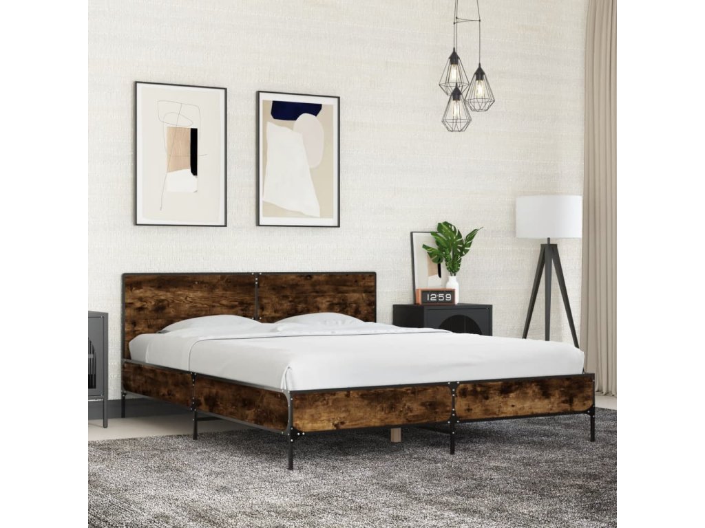 Rám postele kouřový dub 150 x 200 cm kompozitní dřevo a kov 3280004