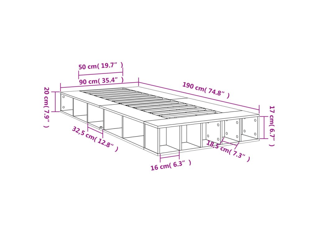 Rám postele kouřový dub 90 x 190 cm kompozitní dřevo 3280528