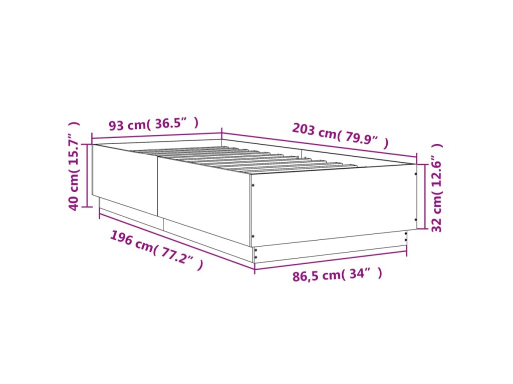 Rám postele kouřový dub 90 x 200 cm kompozitní dřevo 3209727