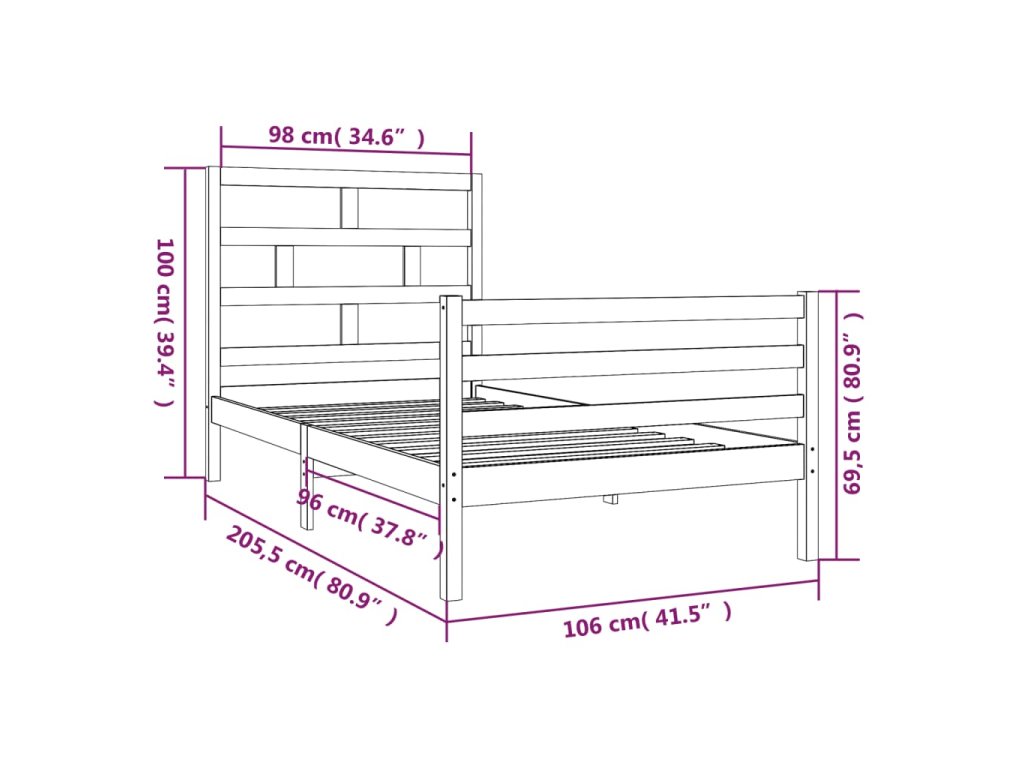 Rám postele masivní borovice 100 x 200 cm 3101273