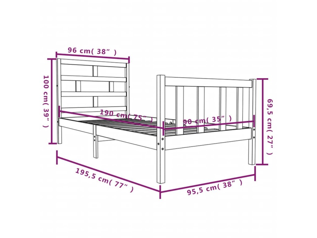 - Rozměry rámu postele: 195,5 x 95,5 x 69,5 cm (D x Š x V)