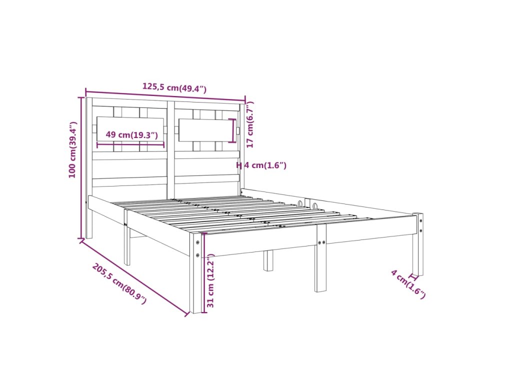 - Celkové rozměry rámu postele: 205,5 x 125,5 x 100 cm (D x Š x V)