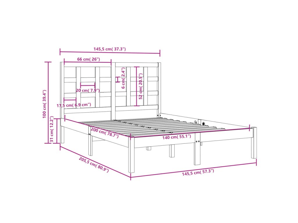 Rám postele masivní dřevo 140 x 200 cm 3105470