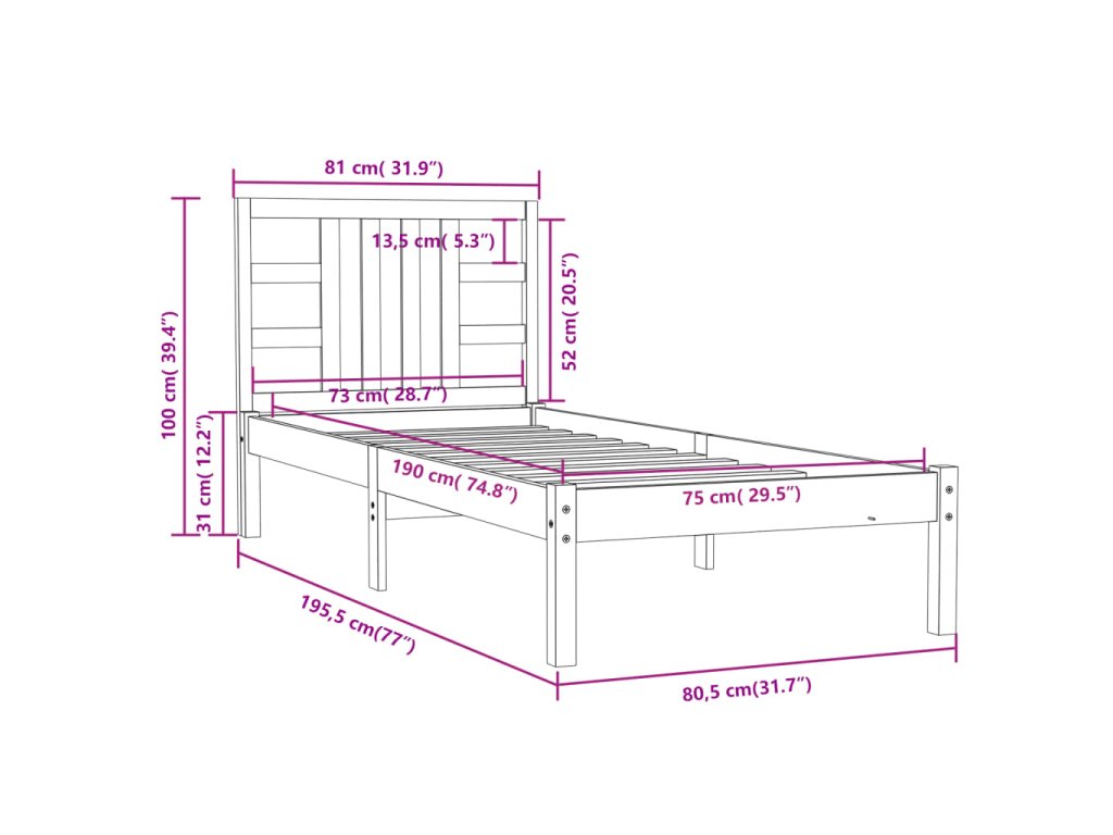 Rám postele masivní dřevo 75 x 190 cm Small Single 3105365