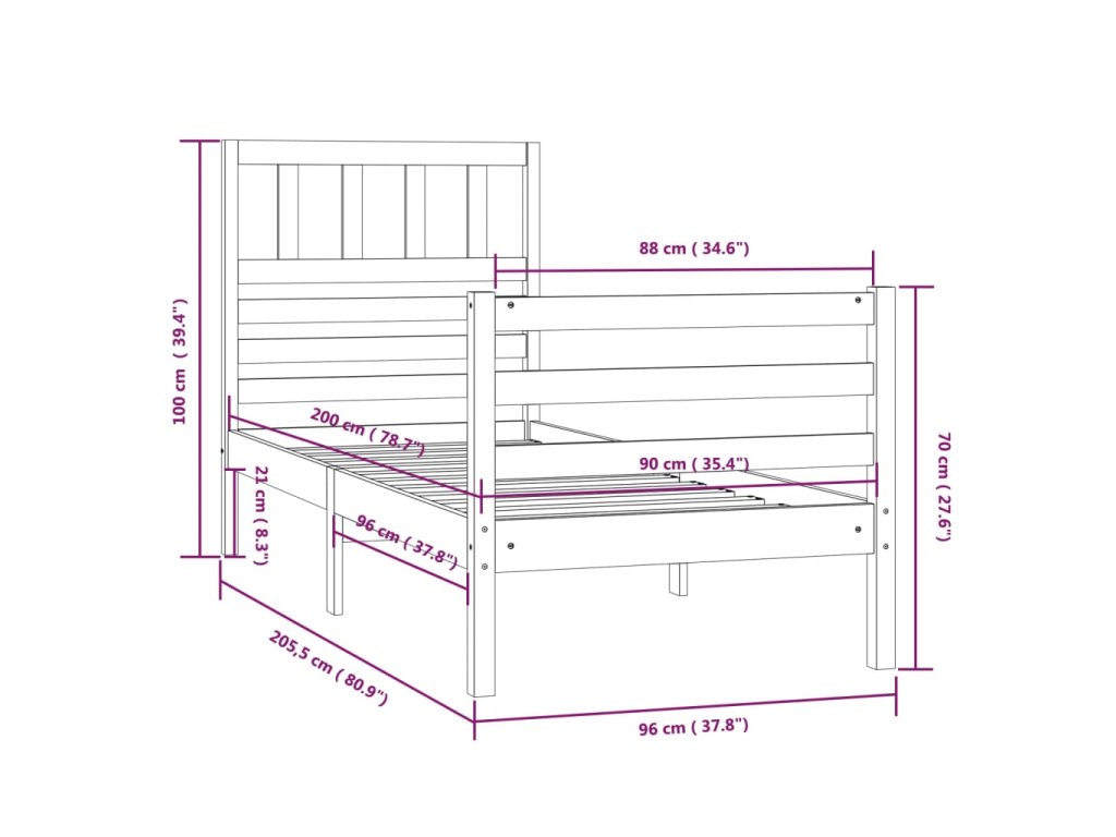 Rám postele masivní dřevo 90 x 200 cm 3101073