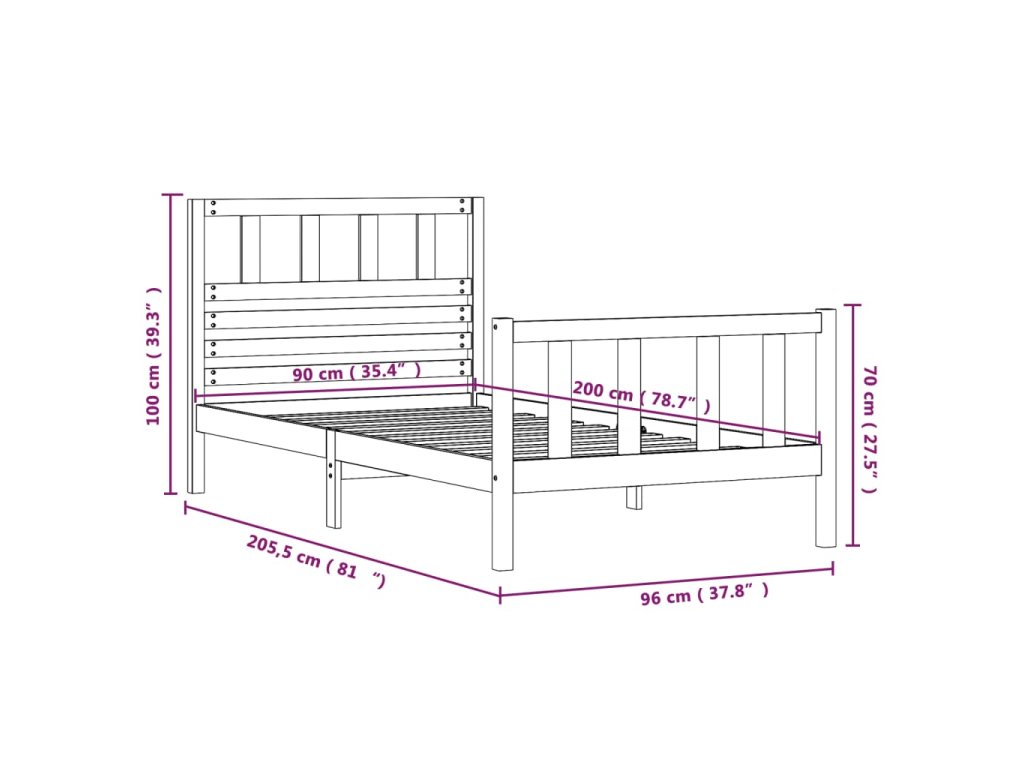 Rám postele masivní dřevo 90 x 200 cm 3101138