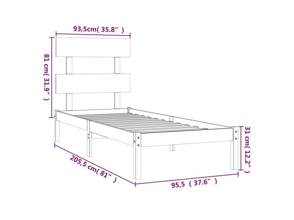 - Rozměry rámu postele: 205,5 x 95,5 x 31 cm (D x Š x V)