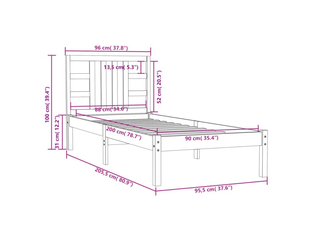 Rám postele masivní dřevo 90 x 200 cm 3105390