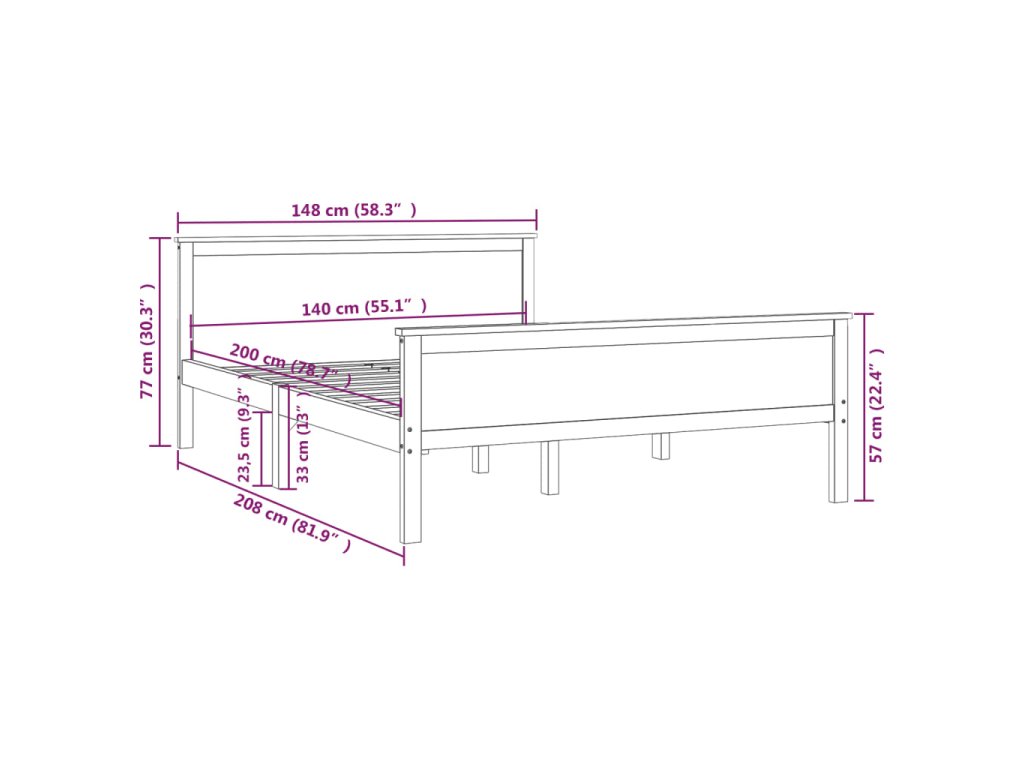 Rám postele masivní dřevo borovice 140 x 200 cm 322177