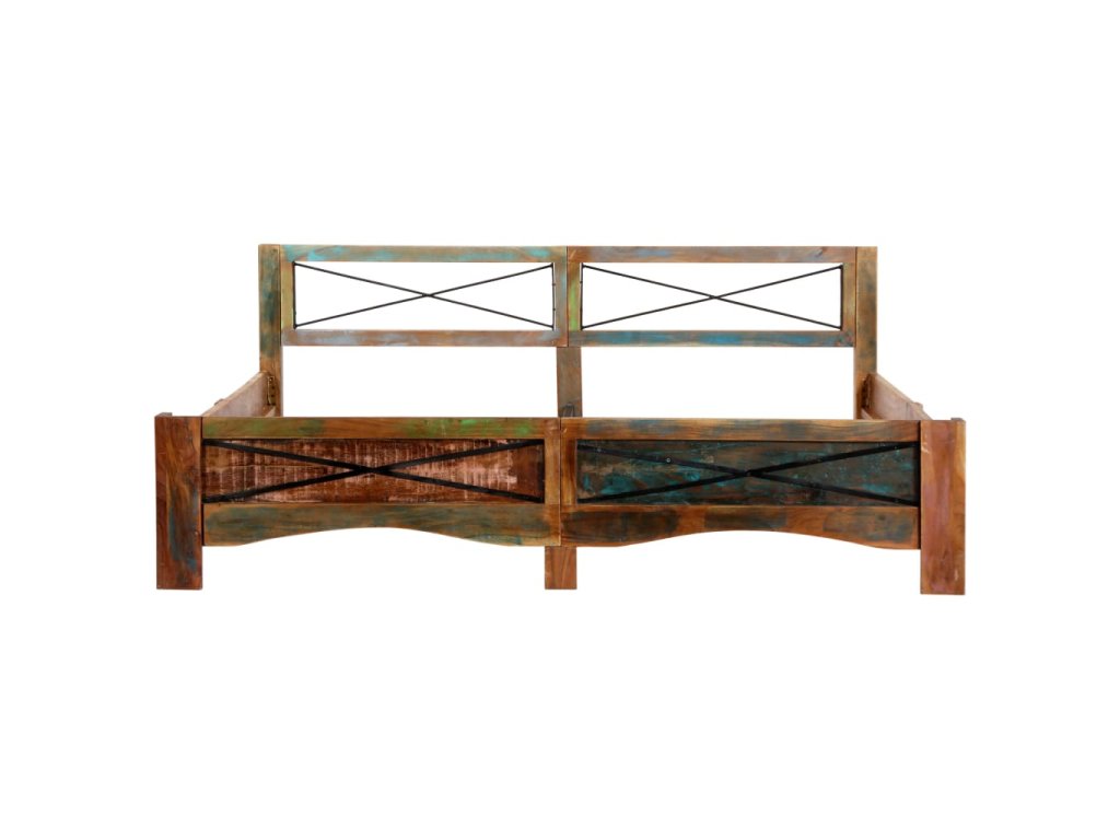 Vintage rám postele je vyrobený z masivního recyklovaného dřeva, které pochází z trámů, podlah a podpěrných nosníků ze starých budov určených k demolici. Sestává tedy z různých druhů dřeva, jako jsou borovice, teak, buk, dub, cedr, mangovník, akácie apod. Recyklované dřevo tak nabývá vlastností všech těchto rozličných typů dřevin. Navíc je již zestárlé, ošlehané a vyschlé, takže se nesmršťuje ani neohýbá. Z tohoto důvodu je tato krásně navržená postel i mimořádně stabilní, odolná a zajímavá na pohled. Zručné řemeslné zpracování a působivá kresba dřeva činí každý kus nábytku jedinečným a lehce odlišným od ostatních. Upozorňujeme, že matrace není součástí dodávky.