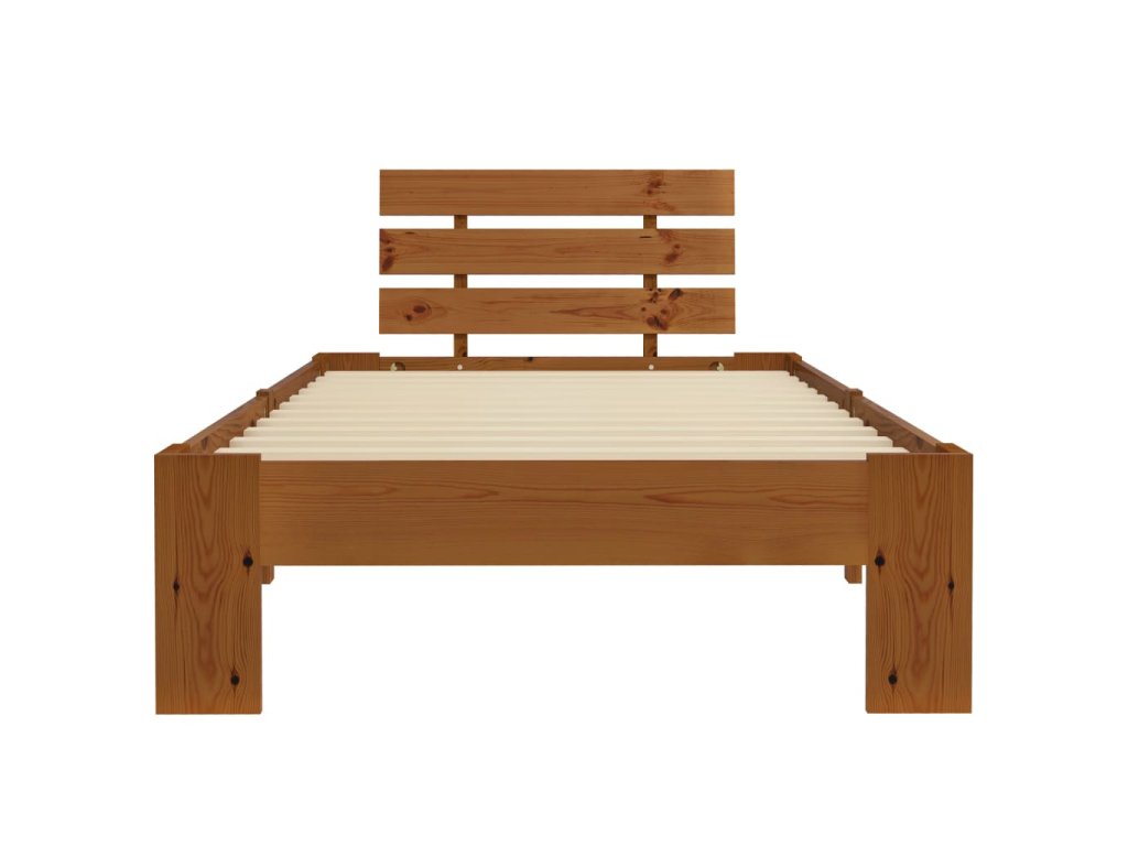 Rám postele je zhotovený z masivního borového dřeva, je tedy nesmírně pevný a odolný. Hodí se na něj matrace o rozměrech 90 x 200 cm.