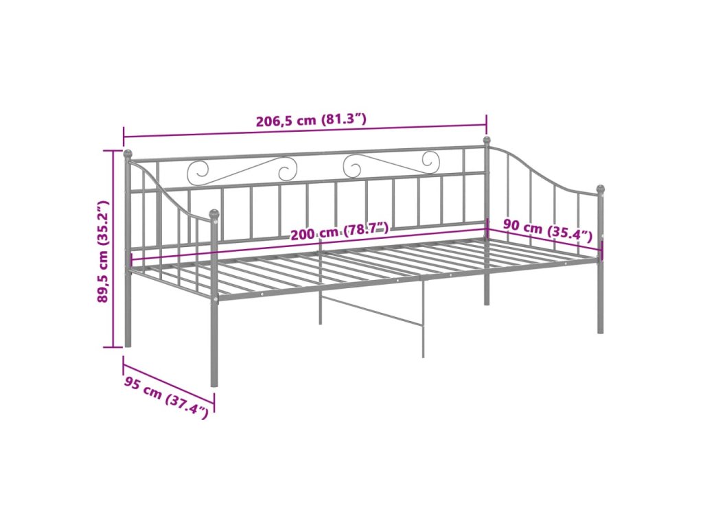 Rám postele/pohovky šedý kovový 90 x 200 cm 324775