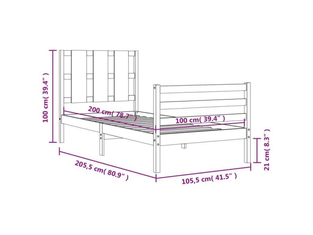 - Celkové rozměry postele: 205,5 x 105,5 x 100 cm (D x Š x V)