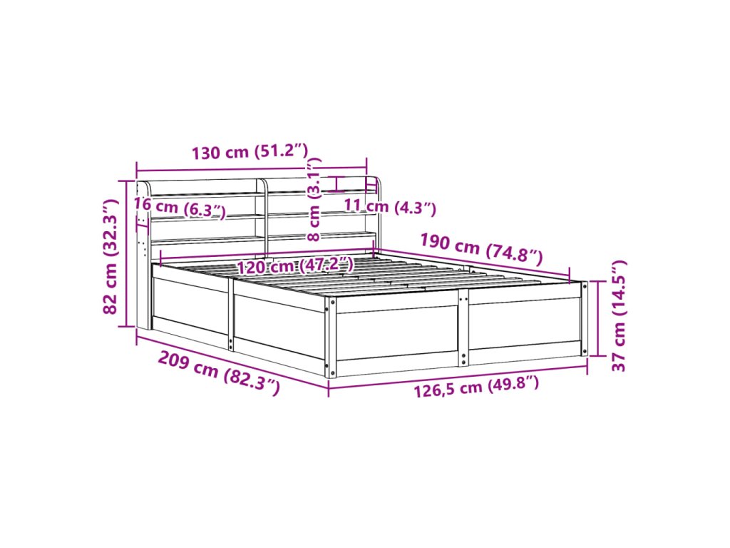 - Vhodné rozměry matrace: 120 x 190 cm (Š x D) (matrace není součástí balení)