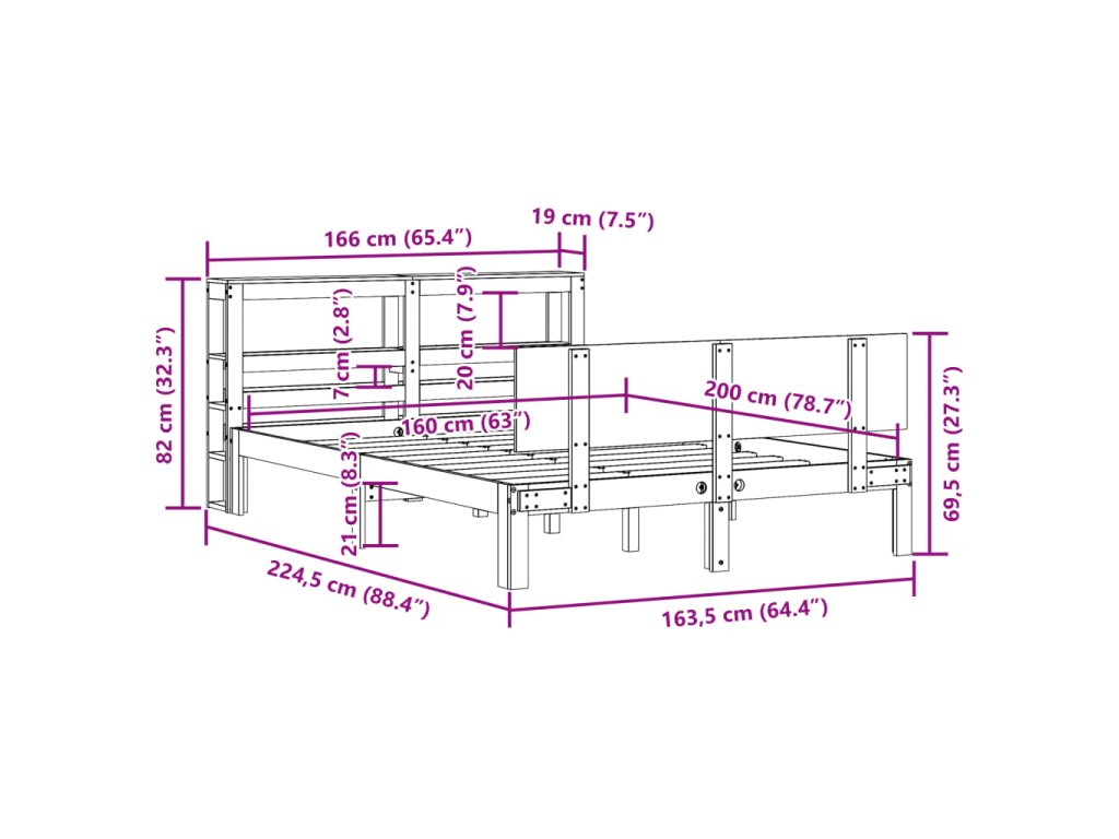 Rám postele s čelem 160 x 200 cm masivní borové dřevo 3306090