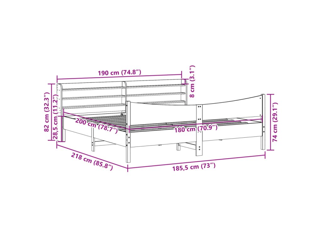 Rám postele s čelem 180 x 200 cm masivní borovice 3307035