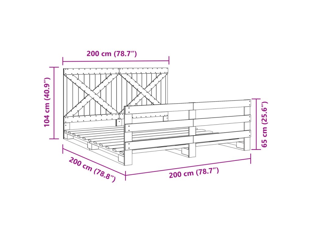 Rám postele s čelem 200 x 200 cm masivní borové dřevo 3281561