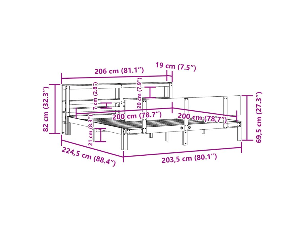 Rám postele s čelem 200 x 200 cm masivní borové dřevo 3306094