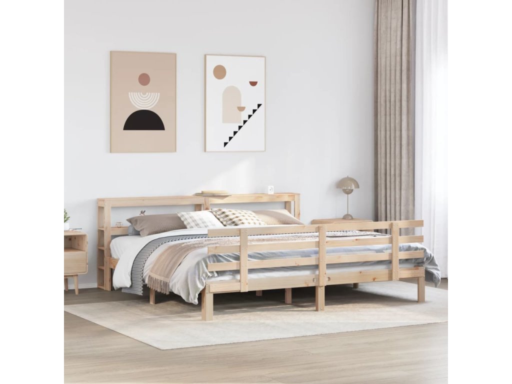 Rám postele s čelem 200 x 200 cm masivní borové dřevo 3306120