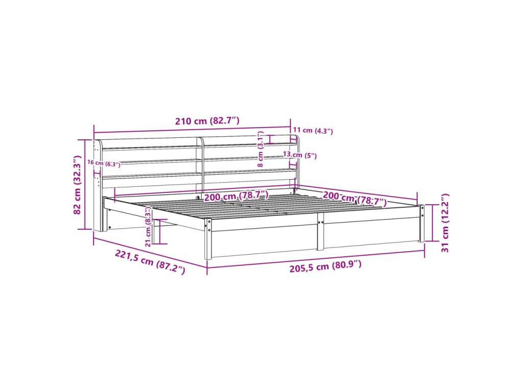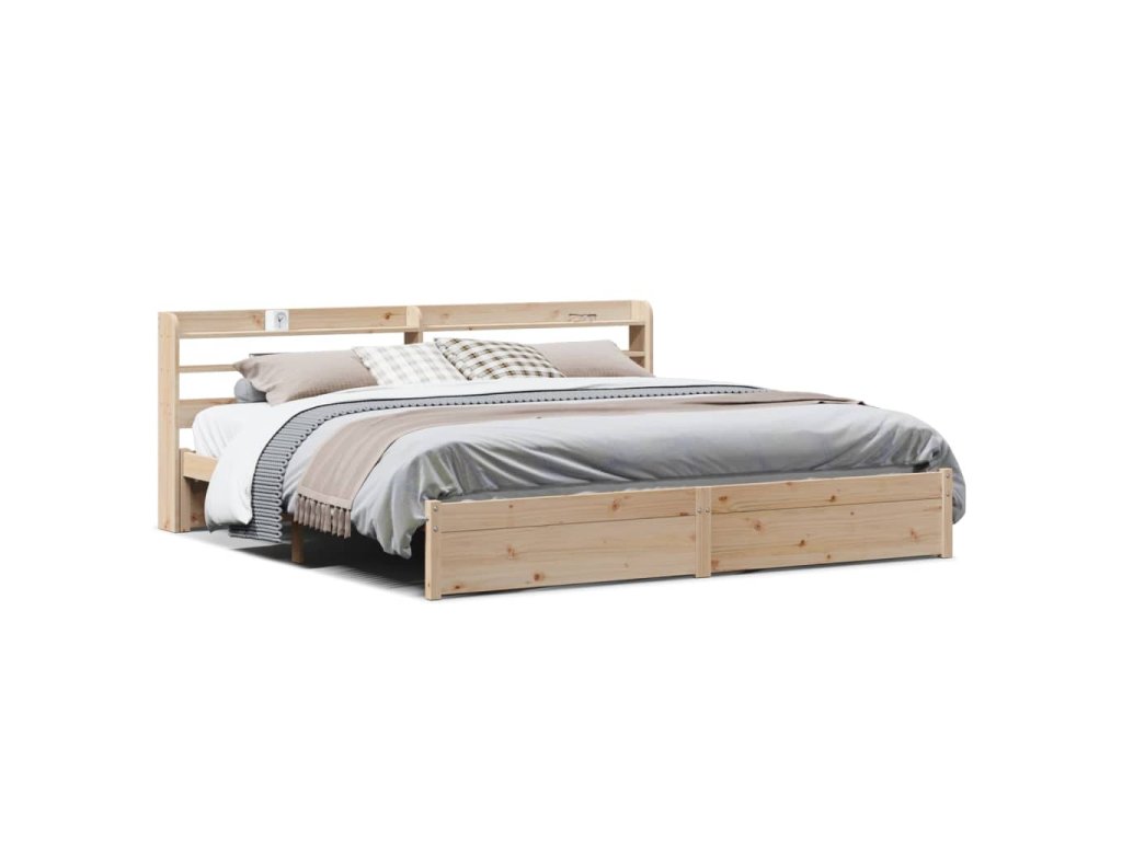 Rám postele s čelem 200 x 200 cm masivní borové dřevo 3306744