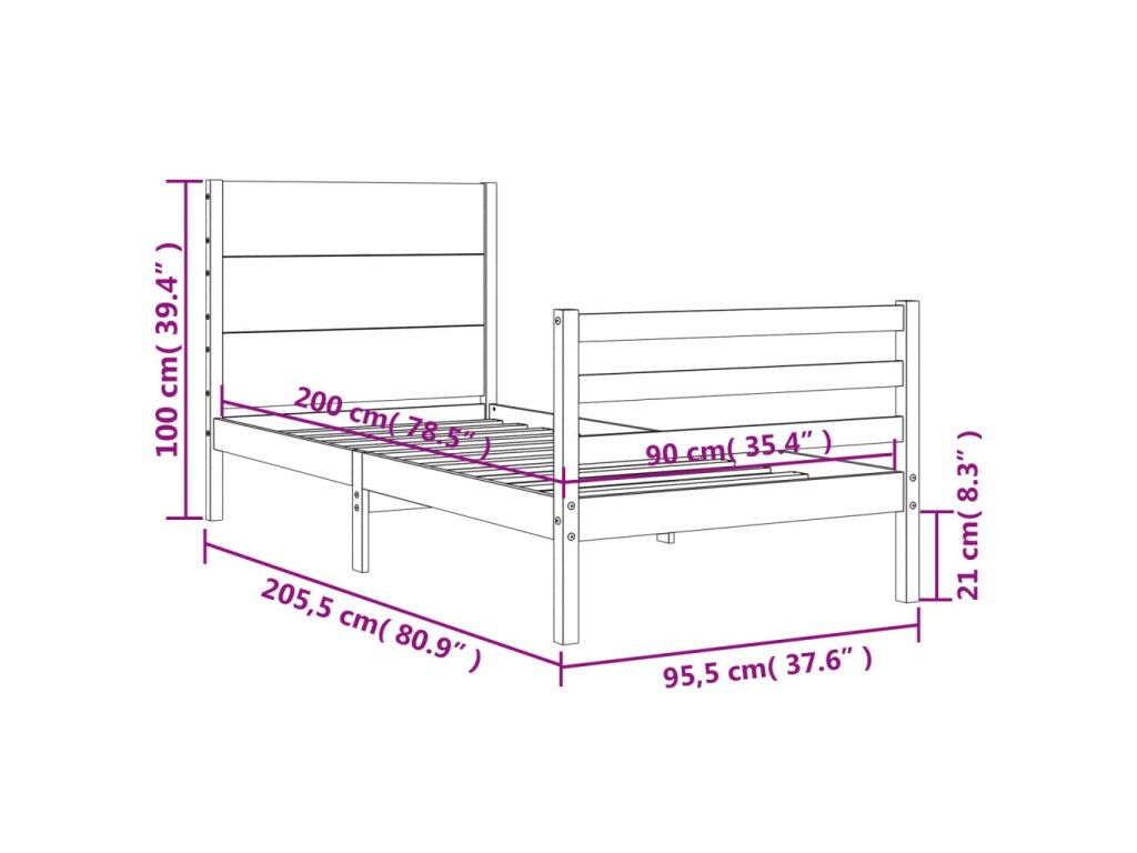 Rám postele s čelem 90 x 200 cm masivní dřevo 3194621