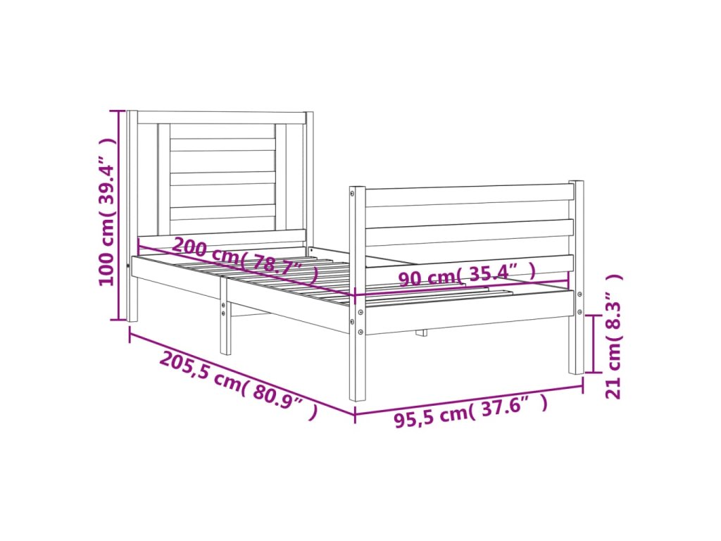 Rám postele s čelem 90 x 200 cm masivní dřevo 3194686