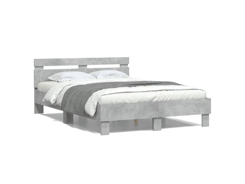 Rám postele s čelem a LED osvětlením betonově šedý 135 x 190 cm 3207570