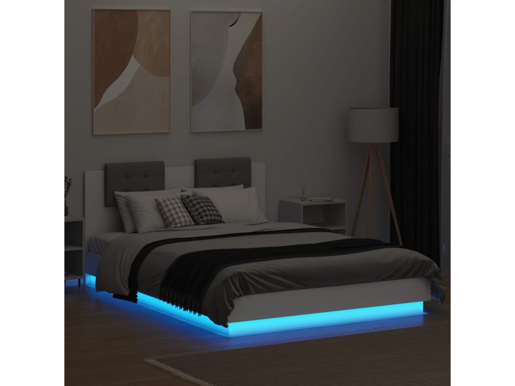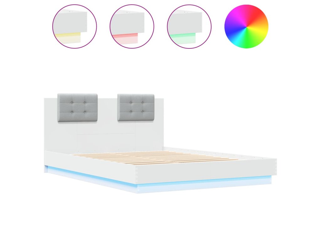 Rám postele s čelem a LED osvětlením bílý 150 x 200 cm 3210003