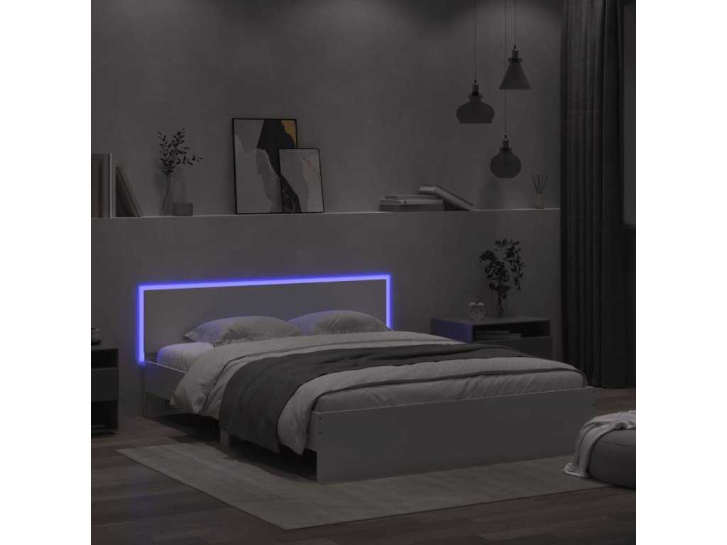 Rám postele s čelem a LED osvětlením bílý 160 x 200 cm 3207595