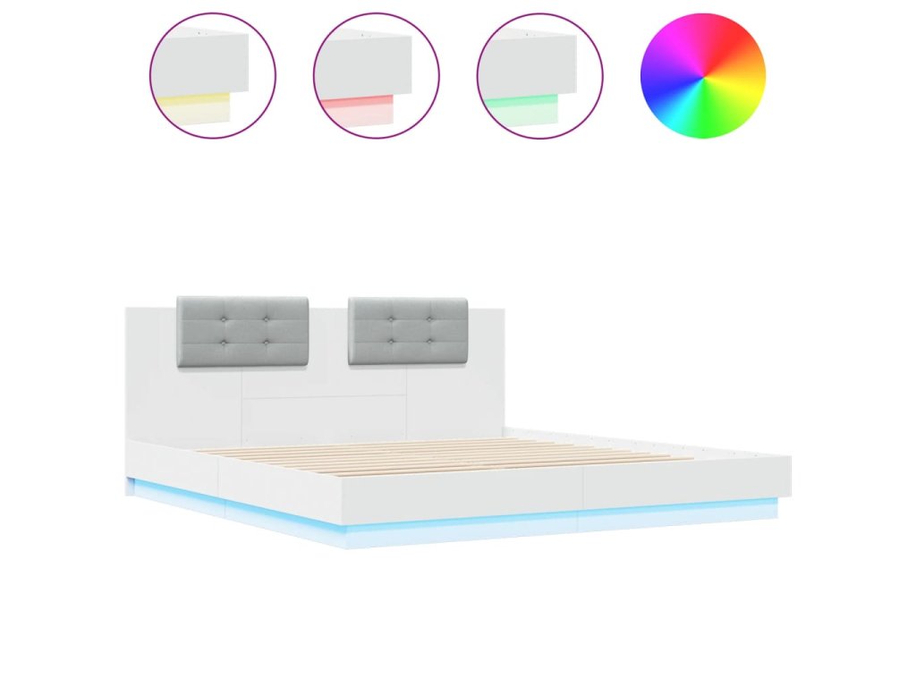 Rám postele s čelem a LED osvětlením bílý 200 x 200 cm 3209982