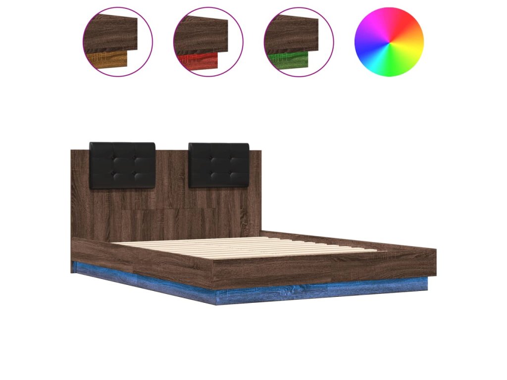 Rám postele s čelem a LED osvětlením hnědý dub 120 x 190 cm 3210058