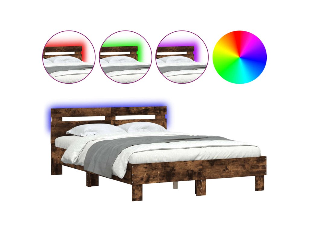 Rám postele s čelem a LED osvětlením kouřový dub 120 x 190 cm 3207578